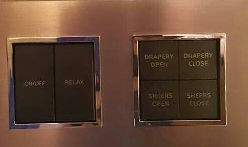 They have an electronic control of the sheers, drapes, and lights. I love the idea that they used yellow lights all over the room. According to facts, yellow lights tend to remove the flaws on your face. Plus, yellow light is very romantic. 😍