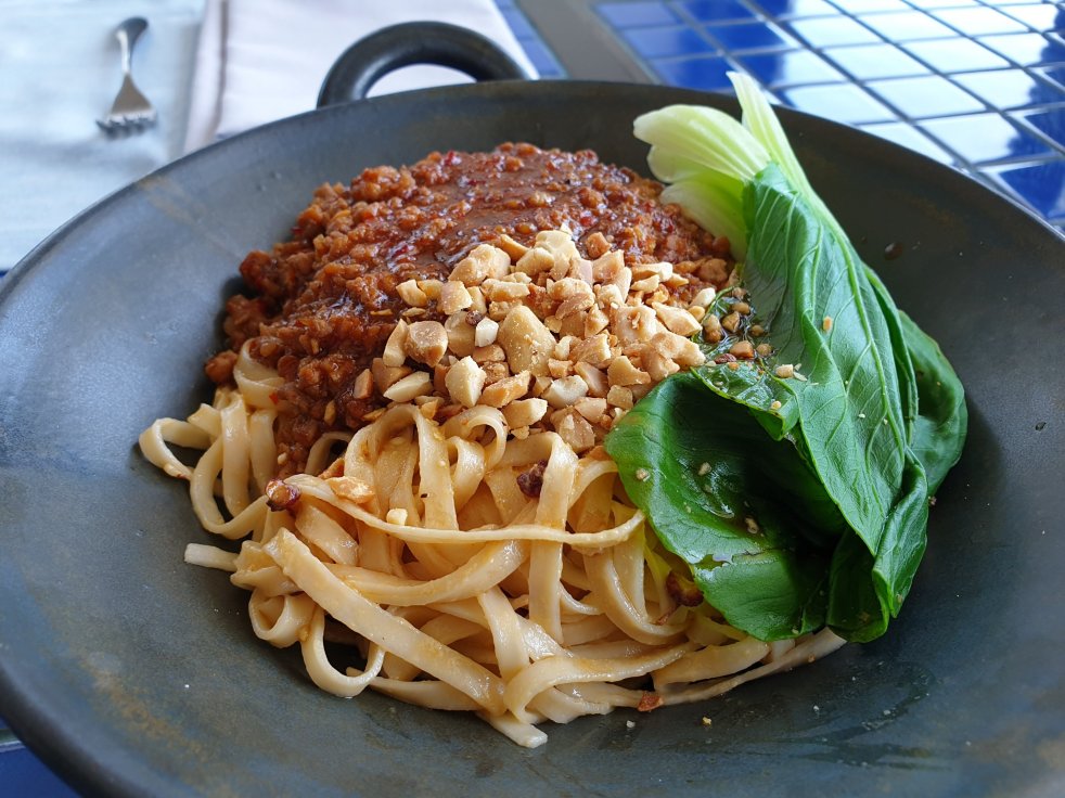 I don’t like asian noodles, I swear! But this one is an exception! It tastes and smells good with the right crunch of nuts and veggies plus al dente noodles. It is salty with a slight kick of pepper at the same time.