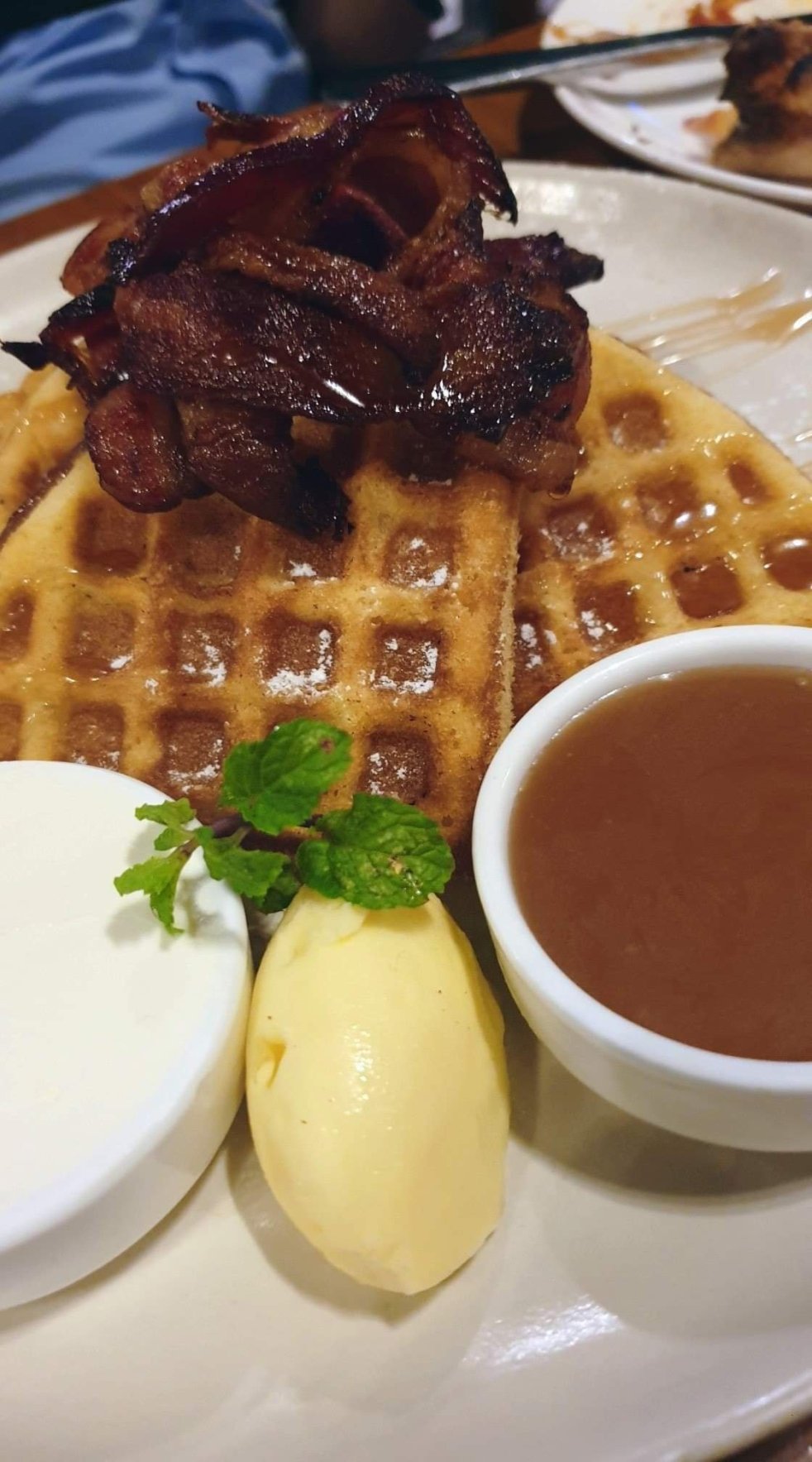 My children’s favorite! The bacon is crispy and the waffles are so fluffy.