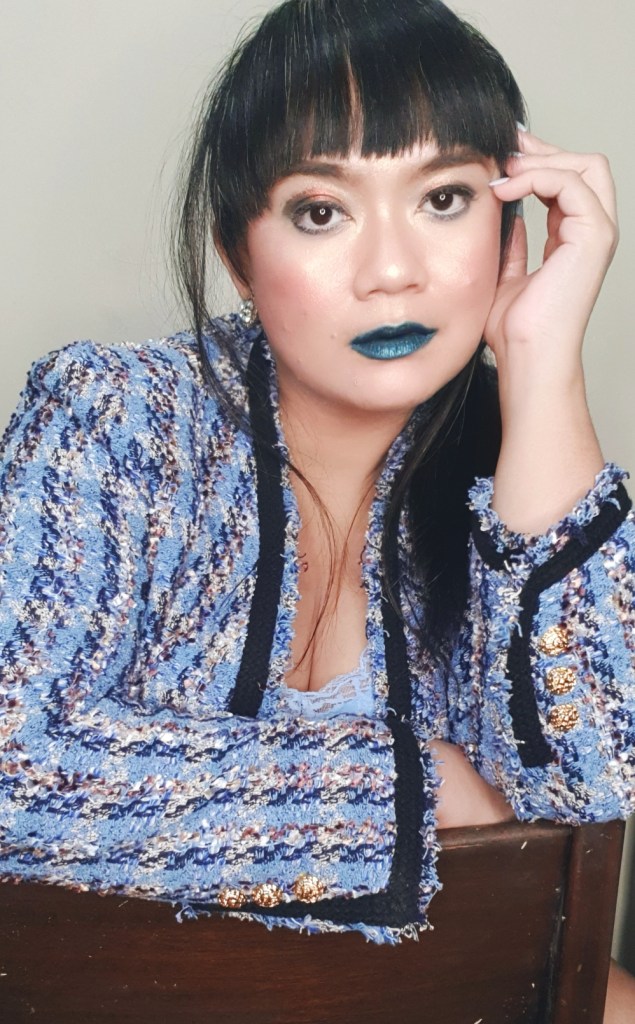 Love the shadow and the lipstick . Iβve been in the mood for blue lipsticks too .