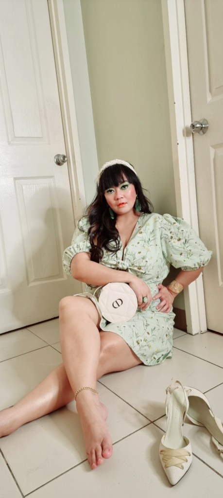 So usually.. I wear an XL-size when the dress is V-neck or has a cut-out detail to give space to my tummy area and cover up my full chest. I actually wore it first without a belt and it looked lousy and plain. Thus, coming up with this pose instead